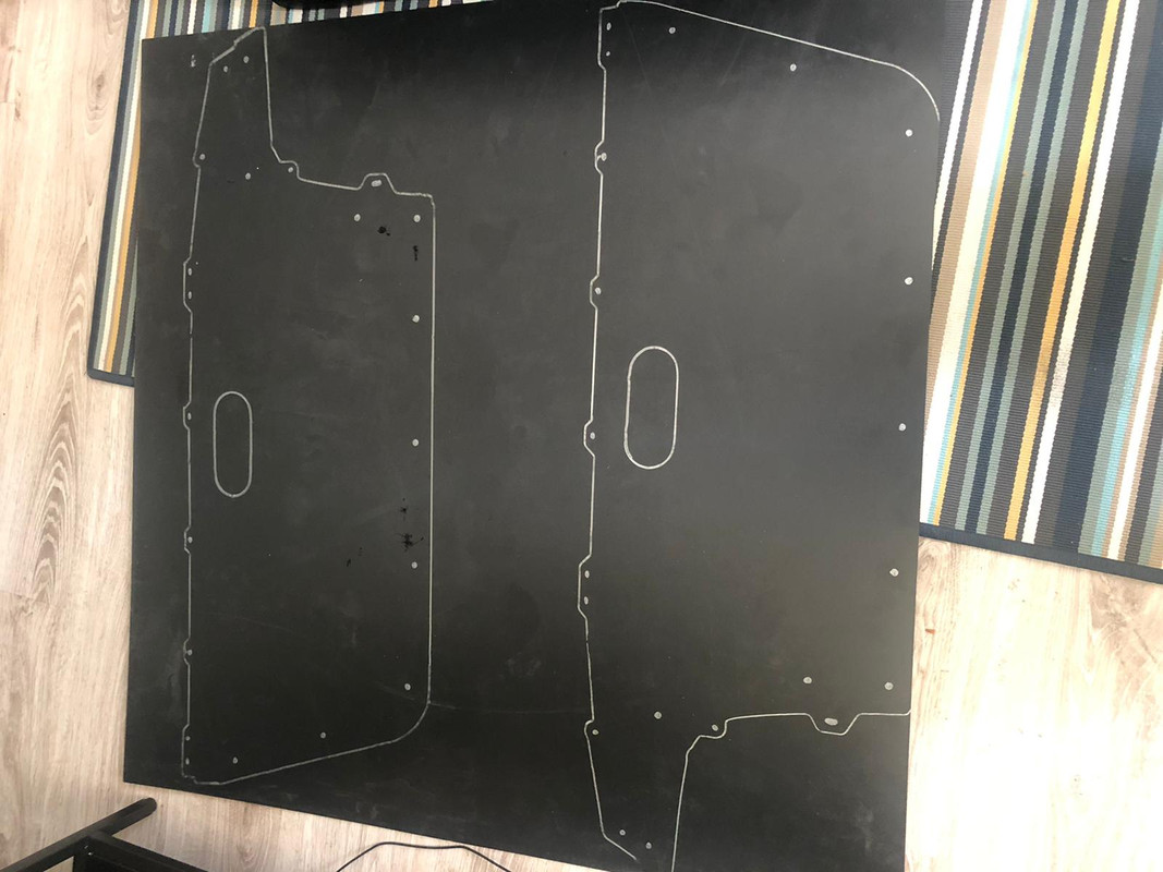 Dupa ce am dat fetele de usi vechi jos, le-am trasat conturul pe foaie neagra de abs (cu un marker cu vopsea alba) inclusiv gaurile pentru clemele oem.